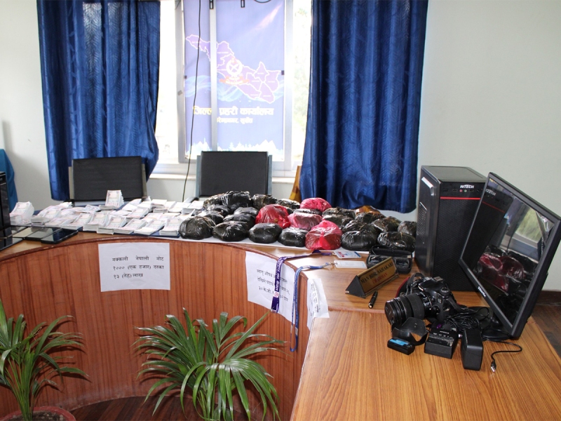 त्यसैगरी, घटनाको थप अनुसन्धानको क्रममा जिल्ला प्रहरी कार्यालय सुर्खेत तथा इलाका प्रहरी कार्यालय कोहलपुर बाँकेबाट खटिएको प्रहरीले मन बहादुरले संचालन गरेको जनगर्जन नेटवर्क प्रा.लि तथा उनको कोठा तलासी गर्दा ५१ हजार रुपैयाँ नक्कली नोट, अफिम जस्तो देखिने पदार्थ १९ किलो ३ सय ग्राम, प्रिन्टर १ थान, सिपियु १ थान, मोनिटर १ थान, किबोर्ड १ थान, माउस १ थान लगायतका सामान फेला पारी मंगलबार बिहान पक्राउ गरिएको प्रहरी प्रधान कार्यालयले जनाएको छ ।