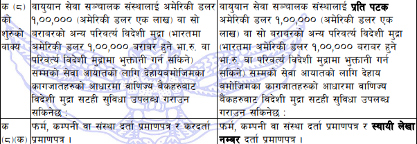 यसअघि वायु सेवा प्रदायकहरूले सेवा आयातका लागि कति पटकसम्म सटही गर्न सक्ने भन्ने विषयमा स्पष्ट व्यवस्था थिएन । यस संशोधनले वायु सेवा क्षेत्रको विदेशी भुक्तानी प्रक्रिया स्पष्ट र पारदर्शी बनाउने अपेक्षा गरिएको छ । अहिलेको संशोधनले प्रत्येक पटकको सटहीको सीमा निर्धारण गरेपछि सेवा प्रदायक संस्थाले विदेशी भुक्तानी सहज रूपमा गर्न सक्नेछन् ।