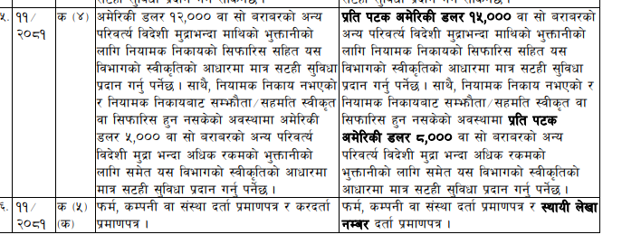 नयाँ संशोधितव्यवस्था अनुसार राष्ट्र बैंकको स्वीकृतिमा अमेरिकी डलर १५ हजार भन्दा माथिको भुक्तानीका लागि भने नियामक निकायको सिफारिससहित राष्ट्र बैंकको विदेशी विनिमय व्यवस्थापन विभागको स्वीकृति अनिवार्य चाहिने छ ।