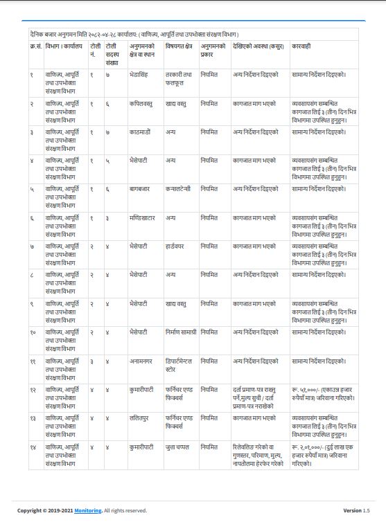 यस्तै ललितपुर महानगरपालिका–२० मा रहेको स्तुपा फर्निसिङ प्रालिलाई ५१ हजार रुपैयाँ जरिबाना तिराएको हो । यस फर्मले मूल्य सूची तथा दर्ता प्रमाणपत्र नराखि कारोबार गरेपछि उक्त जरिबाना तिराइएको विभागले जनाएको छ ।