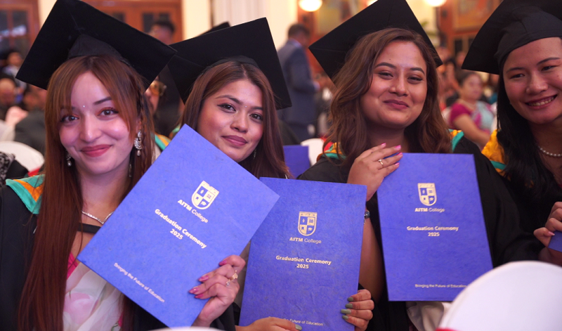 काठमाडौं, ३० साउन । एआइटिएम कलेजको दीक्षान्त समारोह सम्पन्न भएको छ । शुक्रबार काठमाडौंको र्याडिसन होटलमा आयोजित समारोहमा एआइटिएम कलेजले आफ्नो ब्याचलर्स इन इन्टरनेशनल होटल एण्ड टुरिजम म्यानेजमेन्ट र इन्टरनेशनल मास्टर अफ बिजनेश एडमिनिस्ट्रेशन प्रोग्रामका विद्यार्थीलाई दीक्षान्त प्रदान गरिएको हो ।