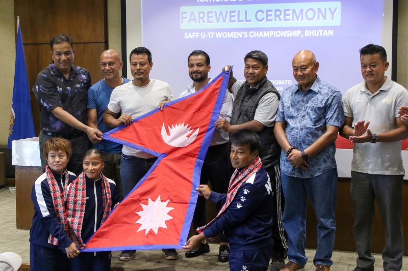 काठमाडौं, १ भदौ । भुटानमा आयोजना हुने साफ यू–१७ महिला च्याम्पियनसिपमा सहभागी हुने नेपाली टोलीलाई बिदाइ गरिएको छ । अखिल नेपाल फुटबल संघ (एन्फा) ले आइतबार राजधानीमा आयोजना गरेको कार्यक्रममा टोलीलाई बिदाइ गरेको हो ।