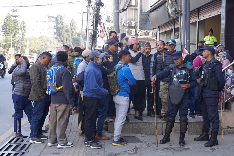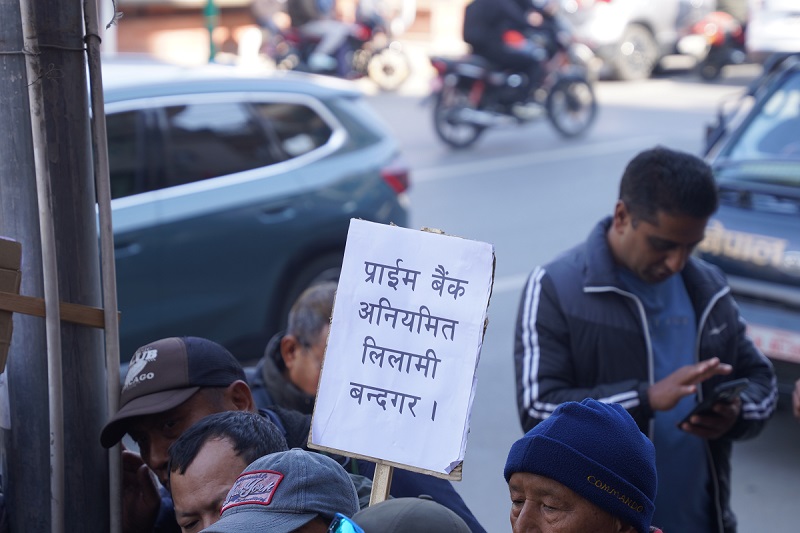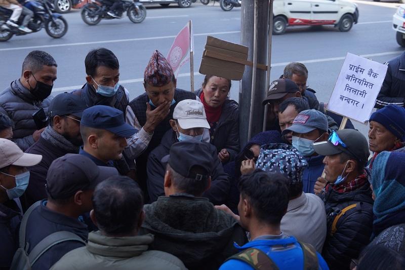 प्राइम बैंकको केन्द्रीय कार्यालयमा सहकारी बचतकर्ताको धर्ना