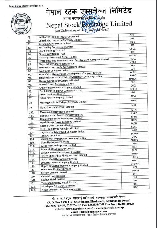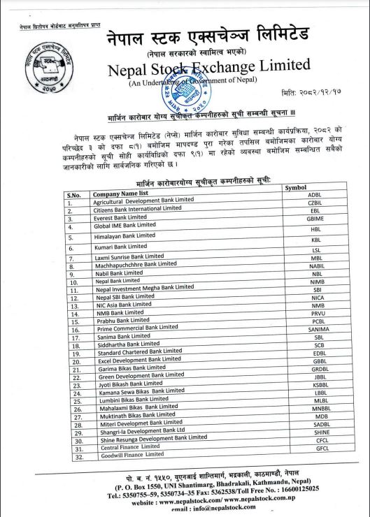 मार्जिन कारोबारका लागि १२३ कम्पनी योग्य