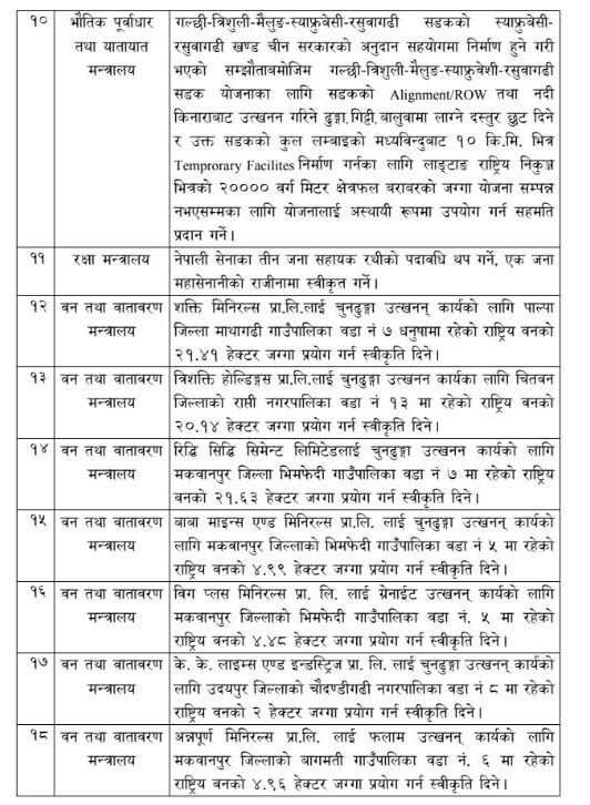 यी हुन् अन्य मन्त्रिपरिषद् बैठकका निर्णय :